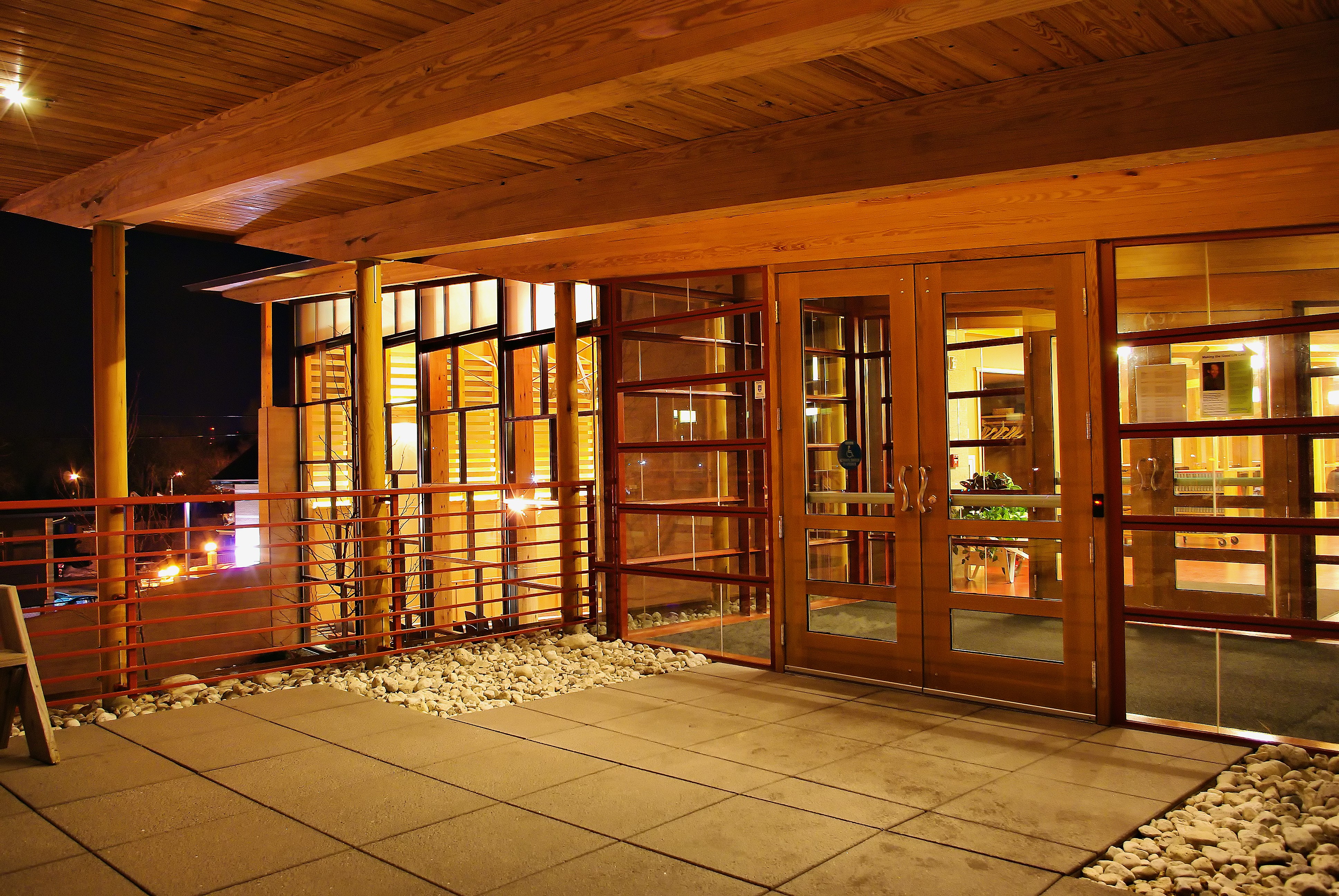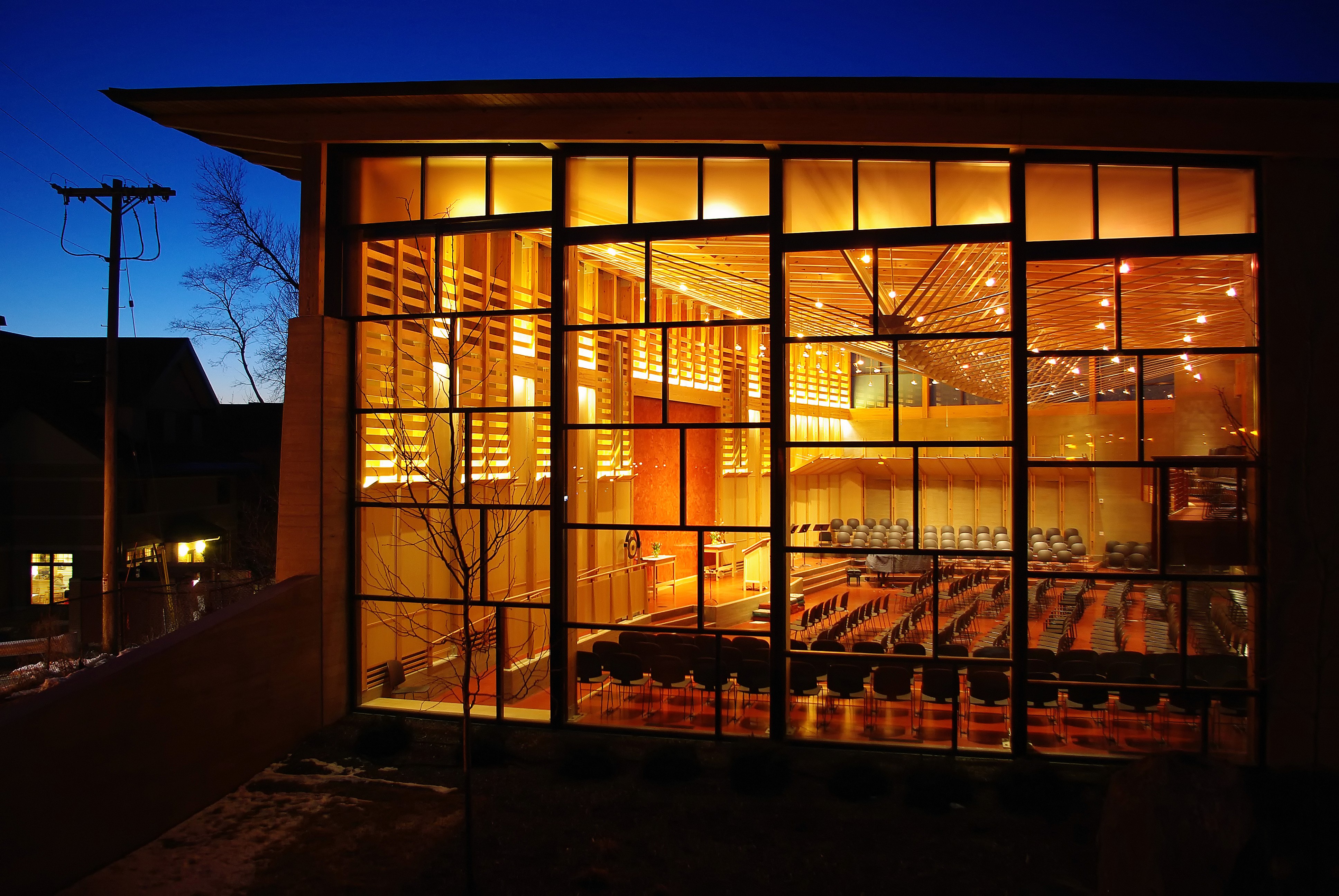 This LEED Gold extensive addition engages nature through an openness of well measured daylighting and exterior views. The embedded lighting throughout reflects the Unitarian Society’s long relationship with traditional weaving by designing locally made custom fabric pendants and woven patinaed copper strip sconces to emphasize this ongoing communal spirit.