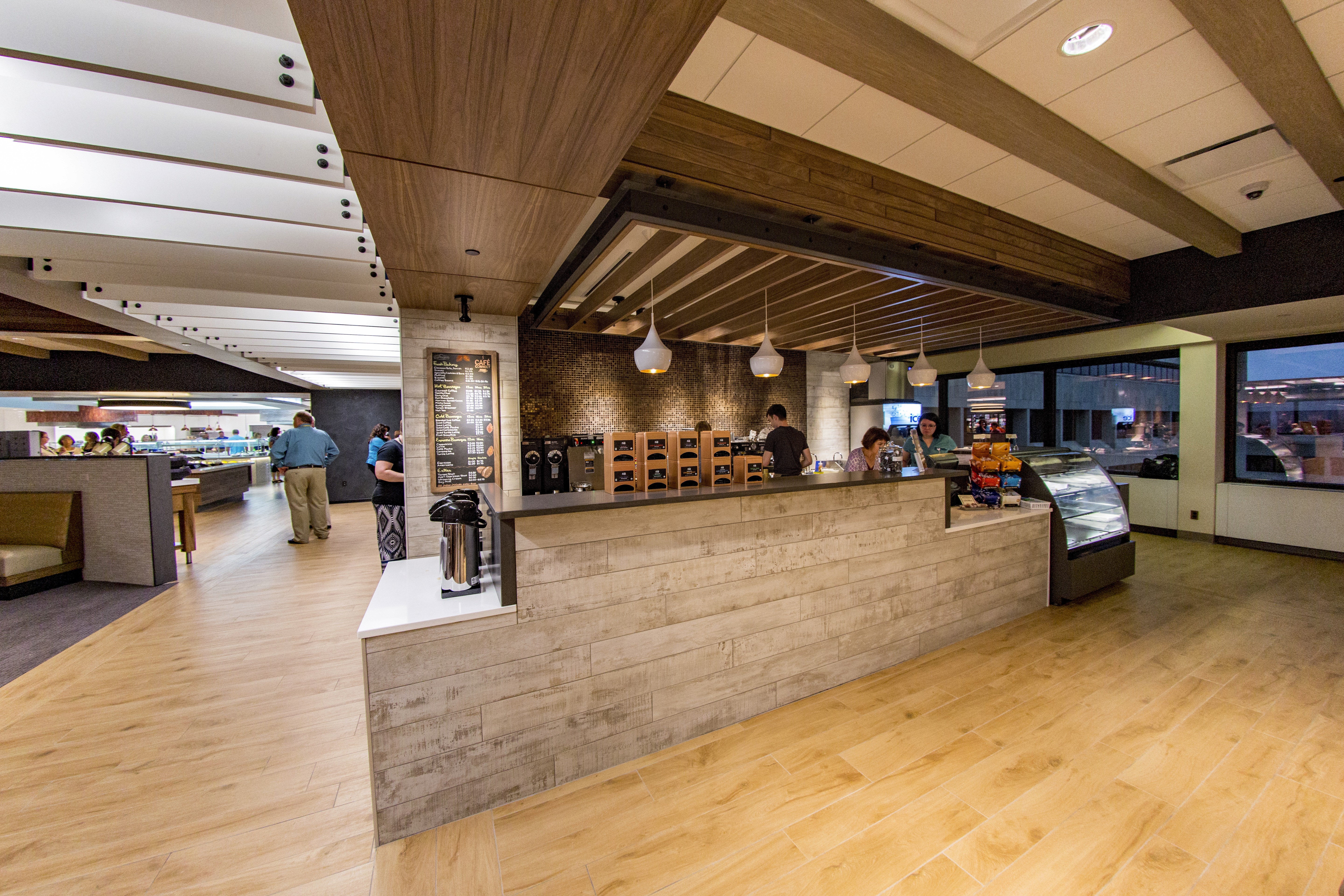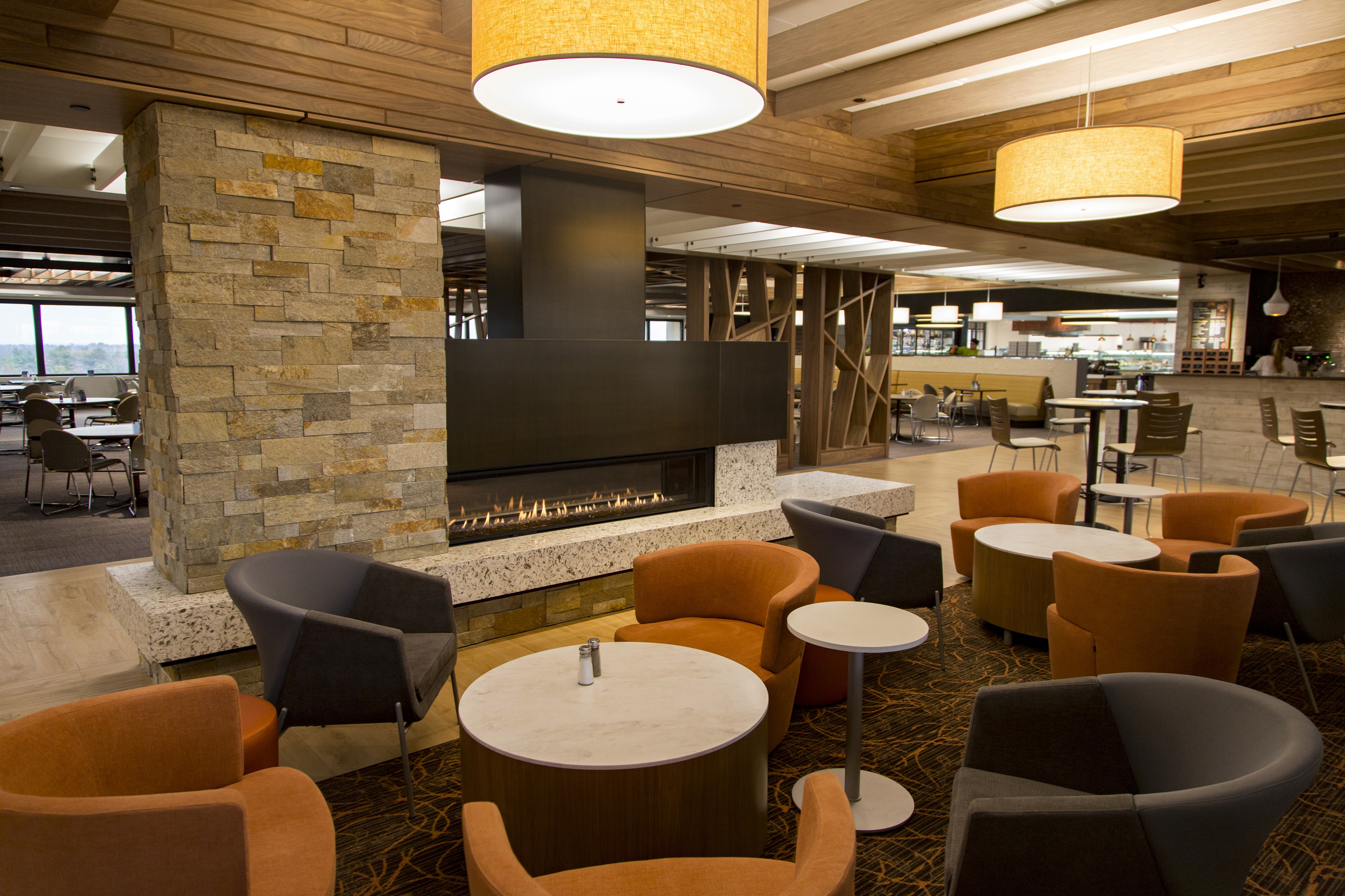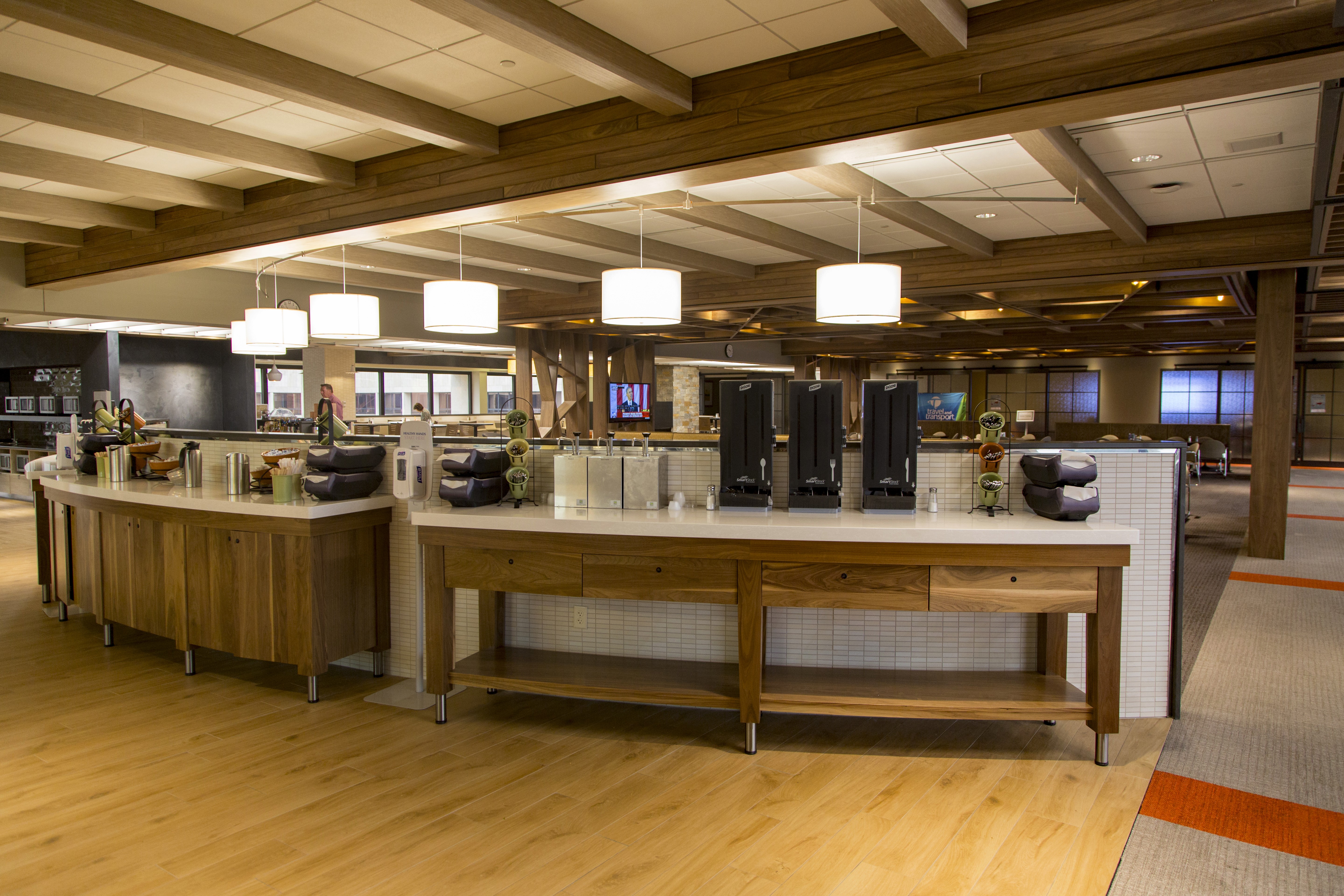 The office food court at the headquarters is designed as a retreat within the workplace, where lighting becomes an invisible yet powerful presence. Seamlessly woven into the architecture, it casts a warm, gentle glow that enriches the natural wood finishes and infuses the space with comfort and coziness. This thoughtful layering of light transforms the food destination into a calming pause point, offering employees a much-needed break from the intensity of their workday.