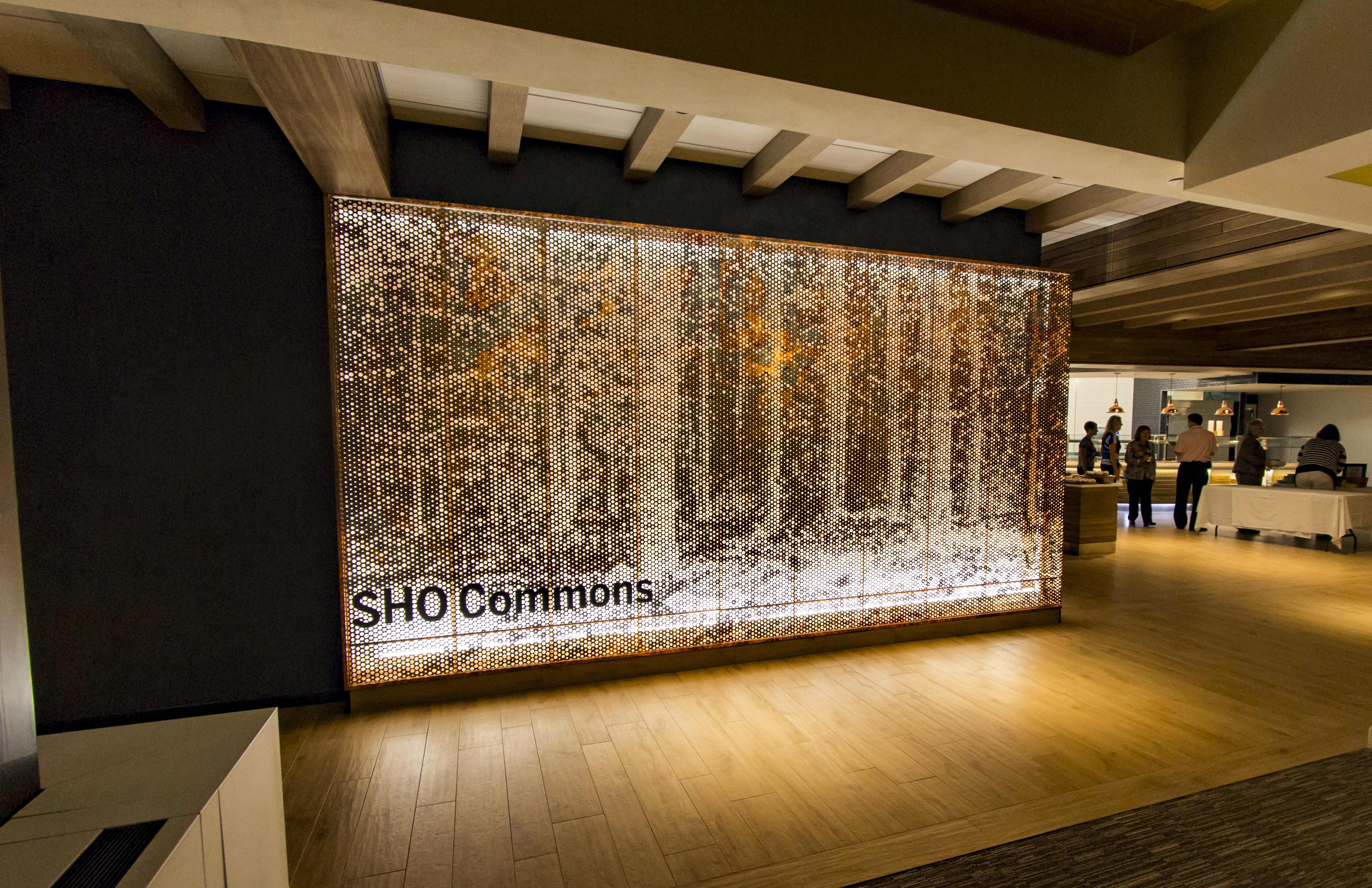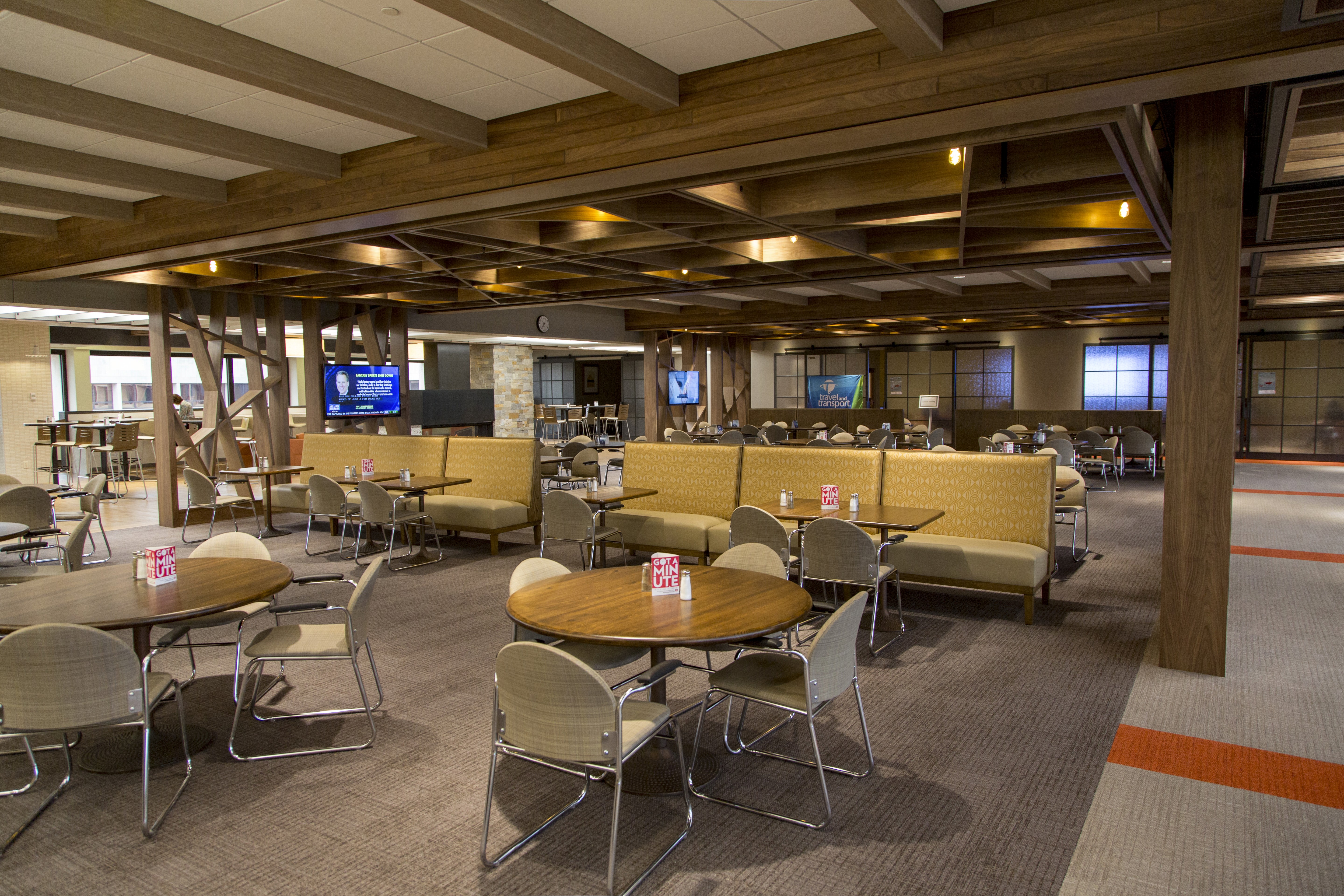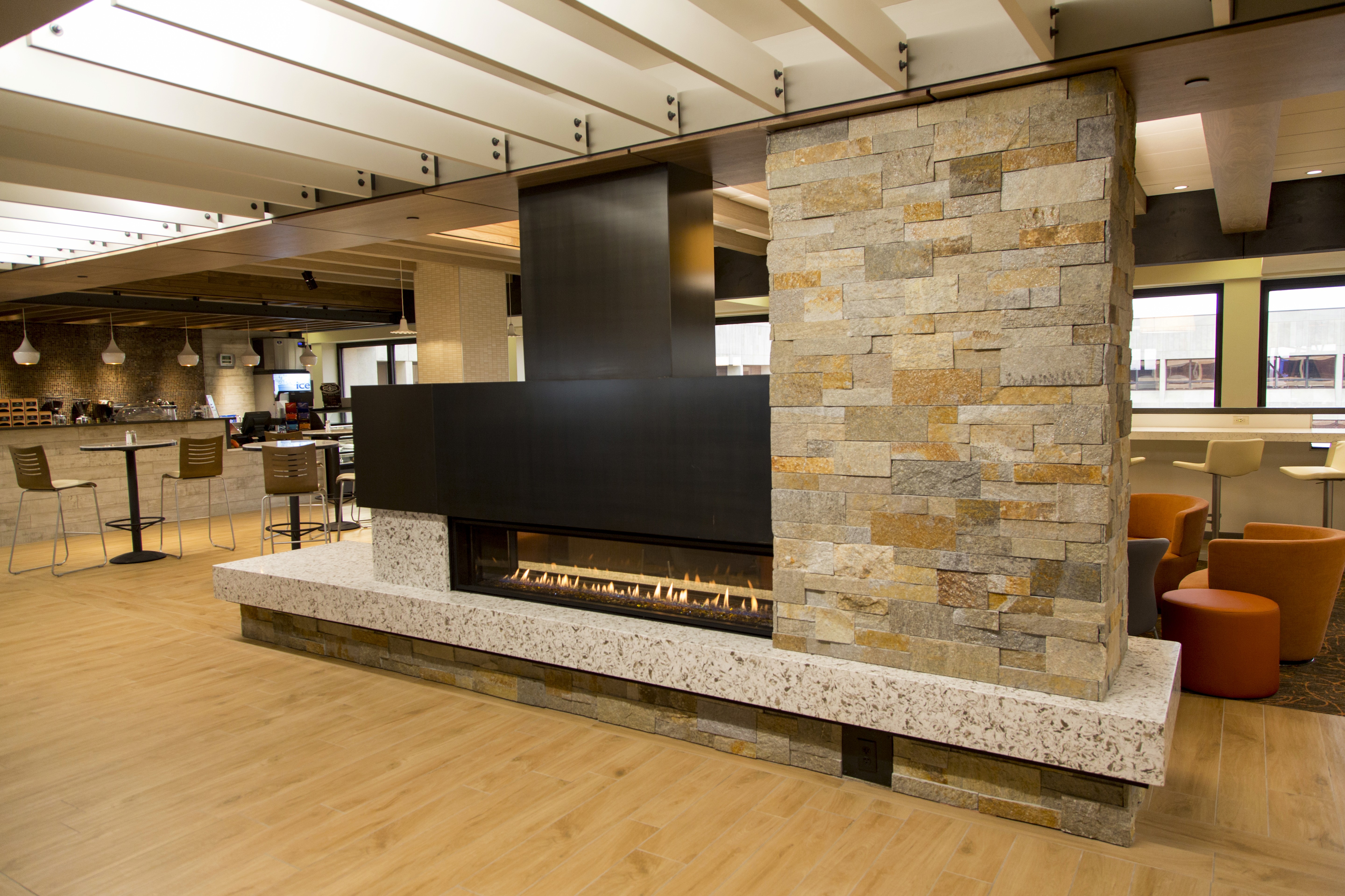 The office food court at the headquarters is designed as a retreat within the workplace, where lighting becomes an invisible yet powerful presence. Seamlessly woven into the architecture, it casts a warm, gentle glow that enriches the natural wood finishes and infuses the space with comfort and coziness. This thoughtful layering of light transforms the food destination into a calming pause point, offering employees a much-needed break from the intensity of their workday.